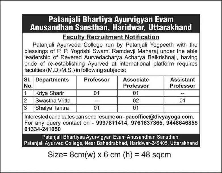 Established in the year 2009, Patanjali Ayurved College is directed to provide new dimensions to the teaching and research in Ayurveda. The institute is recognized by Uttarakhand Ayurved University, Dehradun & National Commission for Indian Systems of Medicine, New Delhi. The institute has the annual undergraduate intake, capacity of 100 B.A.M.S. students. And postgraduate courses being conducted in 11 departments with a total intake capacity of 77 postgraduate students, the college boasts, 14 state-of-the-art departments, fully equipped with labs museums, library, other concerned facilities and departmental OPDs.